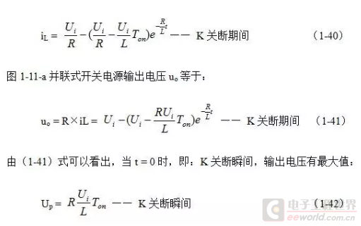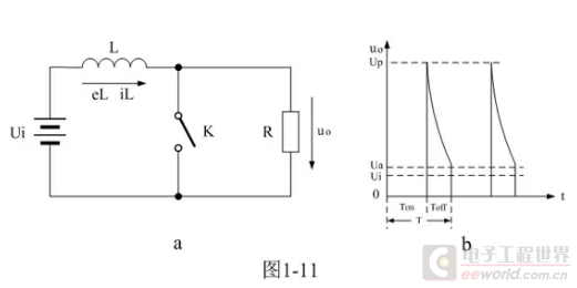 图1-11-a中Ui是开关电源的工作电压,L是储能电感,K是控制开关,R是负载。