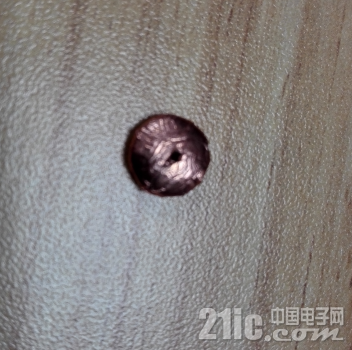 图E定位触摸区后开孔(开了两次第一次打歪了)