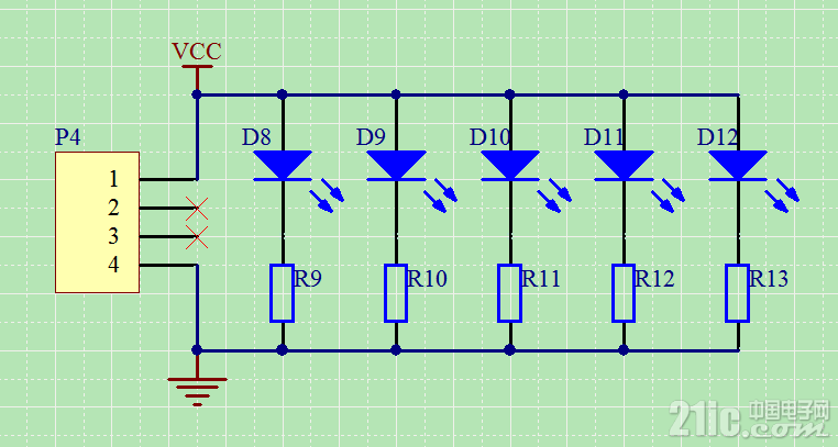 原理分析:通过串联限流电阻,使发光二极管的电流在正常范围内,保证正常发光。