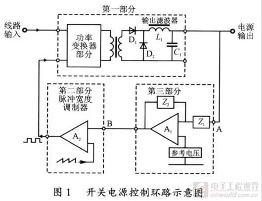 如图1所示为开关电源控制方框示意图,开关电源控制环路由以下3部分构成。