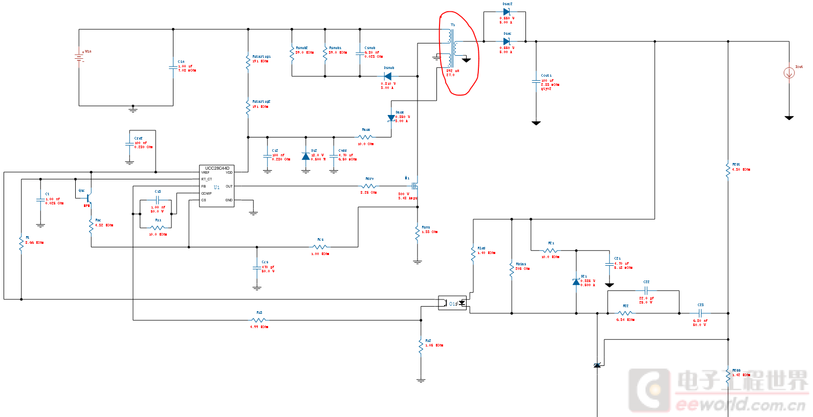 用webench设计的电源,110v的直流输入,输出5v,想请教一下图中用红色标记出来的是变压器吗?如果是的话,都是直流的电源,变压器的用处是干嘛的?